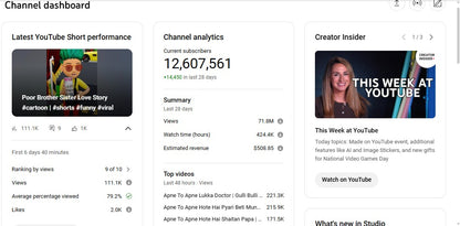 To purchase a YouTube channel, select a channel that fits your requirements, and analyze its analytics data. To obtain further details or buy the channel, communicate with us via WhatsApp.(+91 9529331096)